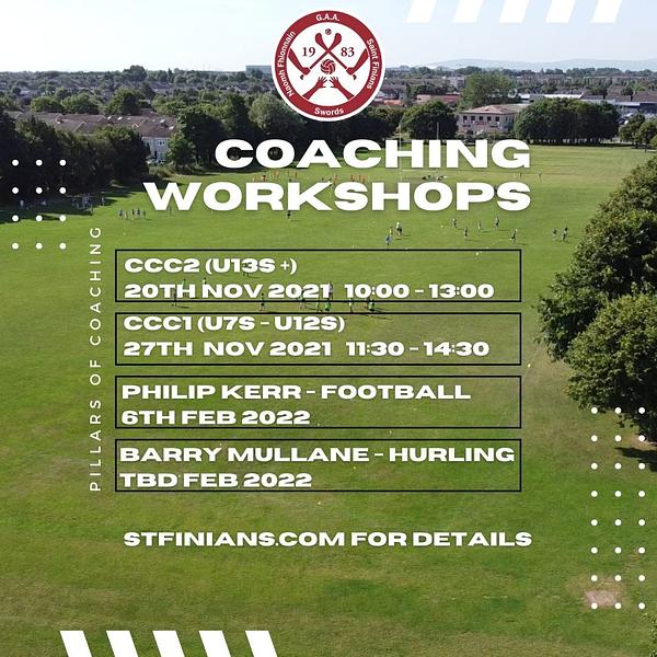 Coaching Workshop – CCC1 (U7s - U12s) Saturday 27th Nov 2021 11:30 – 14:30 – Aisling Kane